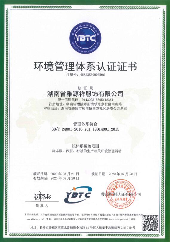 1、企業(yè)概況 湖南省雅源祥服飾有限公司地處湘贛邊境素有瓷城之稱的醴陵郊區(qū),企業(yè)創(chuàng)建于1995年,是行政執(zhí)法制服、被裝的生產(chǎn)企業(yè)。2、組織機(jī)構(gòu) 跟隨改革開放的步伐,我公司不斷發(fā)展壯大,公司董事會下設(shè)總經(jīng)理辦公室、生產(chǎn)部、技術(shù)部、質(zhì)檢部、財(cái)務(wù)部、采購部、業(yè)務(wù)部等部門,下設(shè)有流水線西服生產(chǎn)車間、標(biāo)志服生產(chǎn)車間、襯衣生產(chǎn)車間、... [更多]